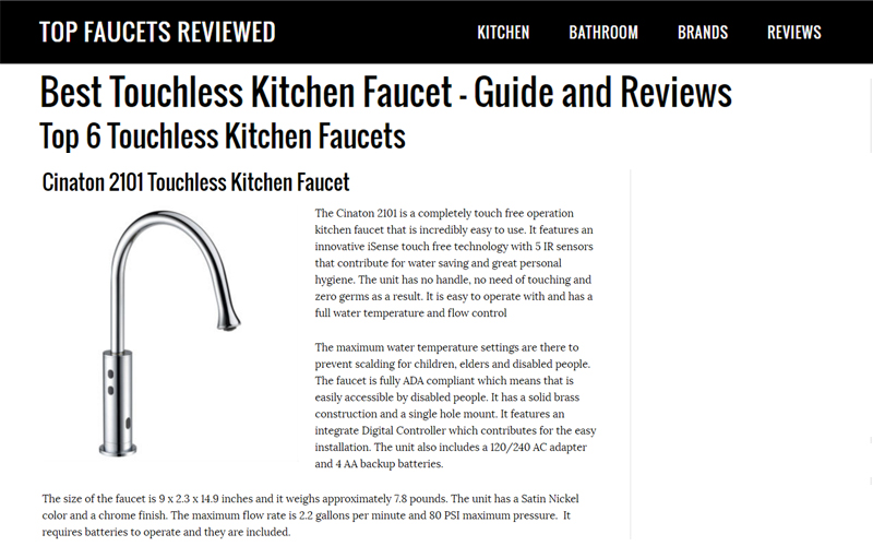 The Cinaton 2101 is a completely touch free operation kitchen faucet that is incredibly easy to use. It features an innovative iSense touch free technology with 5 IR sensors that contribute for water saving and great personal hygiene. The unit has no handle, no need of touching and zero germs as a result. It is easy to operate with and has a full water temperature and flow control