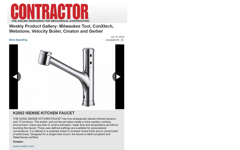 THE K2002 ISENSE KITCHEN FAUCET has five strategically placed infrared sensors and 13 functions. The stylish, pull-out faucet helps create a more sanitary cooking environment. Users are able to control activation, water flow and temperature all without touching the faucet. Three user-defined settings are available for personalized convenience. It is offered in a polished nickel or brushed nickel finish and is constructed of solid brass. Designed for a single-hole mount, the faucet is ADA-compliant and WaterSense certified.